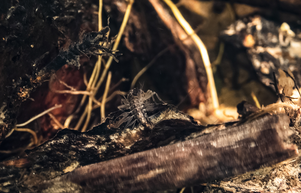 Till och med under ytan i den lilla skogsbäcken börjar det röra på sig. Här är en dagsländelarv.