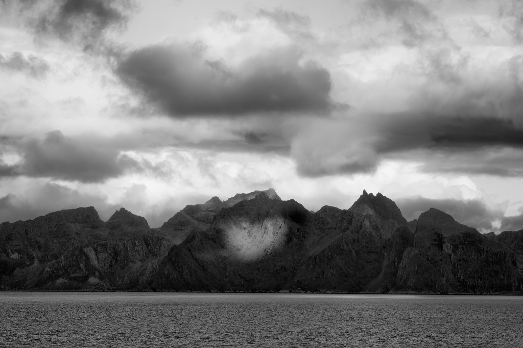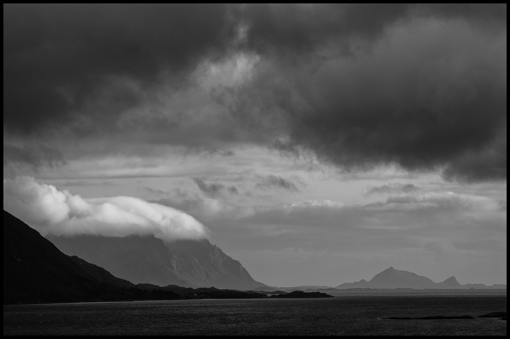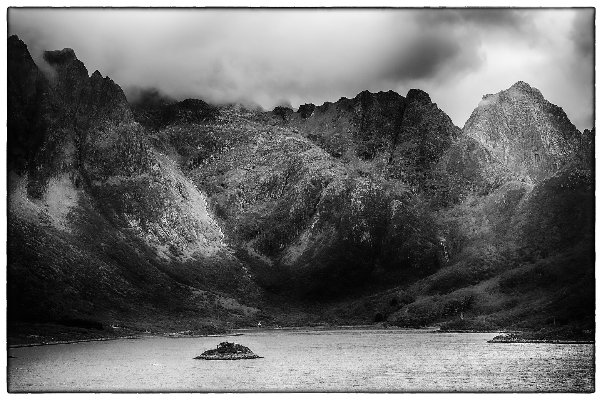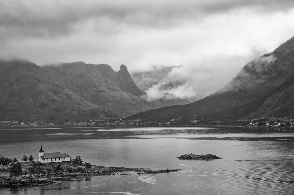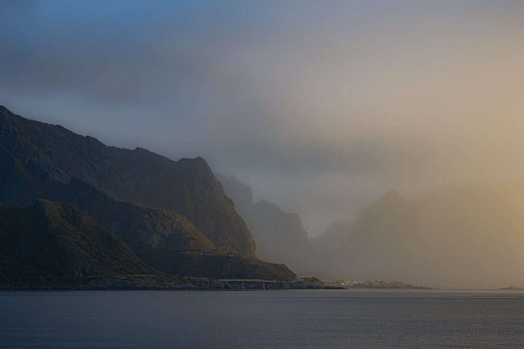 Jag hade på känn att landskapet skulle vara vackert, men redan några mil efter Narvik blev jag totalt hänförd över de storslagna vyer som uppenbarade sig, nästan vart man än tittade. Skalan är liksom nästan ogripbar när man ser små hus vid vattnet och massiva bergsformationer som reser sig bak stugknuten.